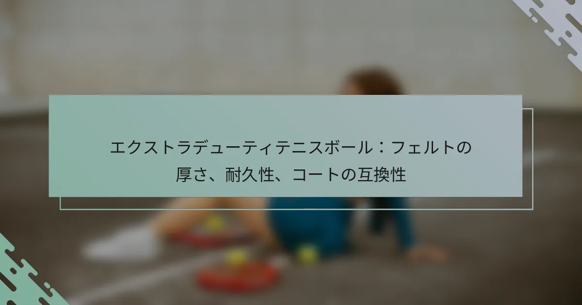 エクストラデューティテニスボールの摩耗を特定することは、最適なパフォーマンスを維持するために重要です。一般的な兆候には、フェルトの明らかな損失が含まれ、フェルトがふわふわしたり摩耗したりしている場合や、バウンスの高さの変化があり、内部圧力が損なわれている可能性を示します。