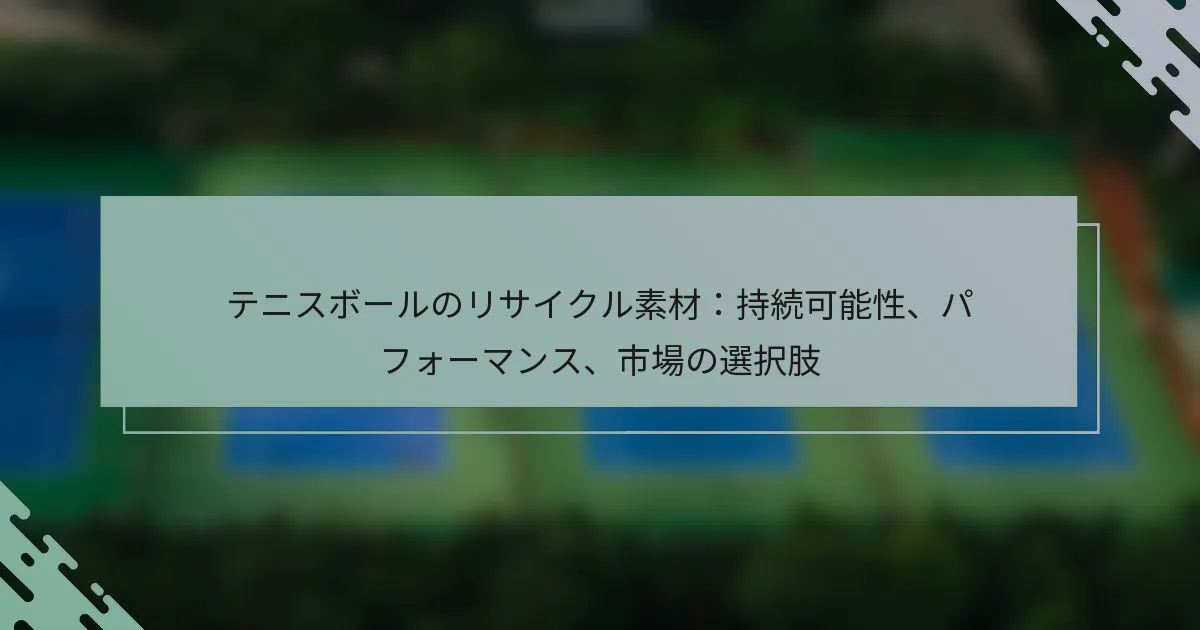 リサイクルテニスボールは、環境的な利点とパフォーマンス上の課題の両方を提供します。廃棄物を削減し持続可能性を促進する一方で、プレーヤーは従来のオプションと比較して耐久性やプレイアビリティに違いを感じることがあります。