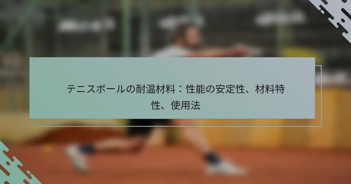 テニスボールの温度耐性は、その性能と寿命に大きな影響を与えます。選手は、異なる気候がボールの挙動にどのように影響するかを考慮し、トレーニングや競技プレイに影響を与える必要があります。