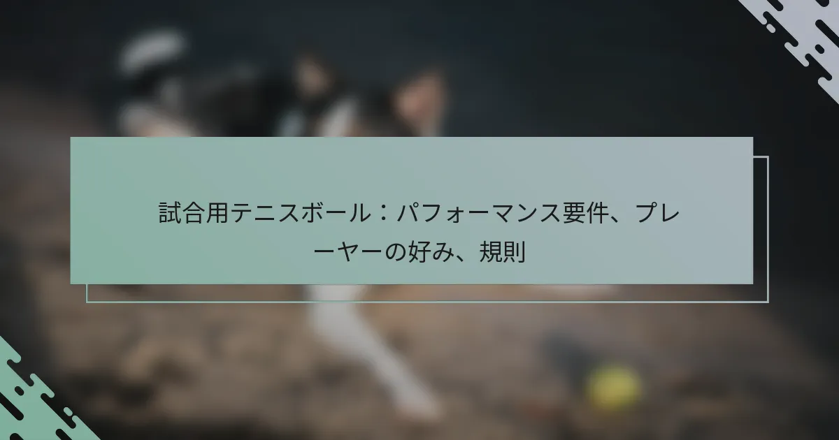試合用に使用されるテニスボールは、公正な競技と最適なプレイアビリティを確保するために特定の性能要件を満たさなければなりません。主要な要素には、バウンスの高さ、耐久性、さまざまな条件での一貫性、重量の仕様、異なるコート表面との互換性が含まれます。